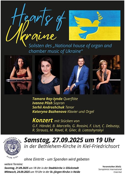 Der SI Club Kiel organisierte ein Konzert mit Künstler*innen aus Kiew, um die künstlerische Arbeit in der Ukraine zu unterstützen. Es fand in der Bethlehemkirche in KIel-Friedrichsort statt.